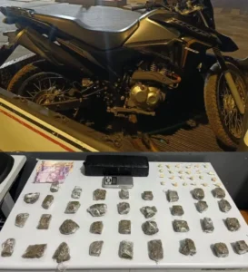 A Polícia procura por dois suspeitos, de 27 e 28 anos, envolvidos com o tráfico de drogas em São Francisco. Depois de denúncias de que eles realizavam entregas de drogas utilizando uma motocicleta preta, os militares monitoraram os suspeitos na noite dessa quarta-feira, 3/dez, mas a dupla conseguiu fugir, deixando para trás um pacote de drogas. Durante buscas no imóvel citado na denúncia, a Polícia Militar encontrou uma sacola pertencente ao homem de 27 anos contendo mais drogas, R$ 85 em dinheiro, uma balança, um celular Samsung e dois cartões bancários em seu nome. A motocicleta utilizada pelos suspeitos foi localizada e apreendida. Um jovem de 23 anos que estava no local, foi abordado e disse que estava apenas prestando serviço de mototáxi para o suspeito de 28 anos, negando ser usuário de drogas. Ele foi preso por suspeita de tráfico. Os dois homens de 27 e 28 anos, que seguem sendo procurados, já são conhecidos no meio policial pelo envolvimento com o tráfico de drogas.