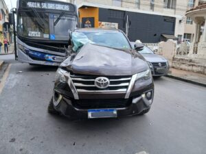 A Polícia Militar foi acionada para atender um acidente envolvendo um ônibus e uma caminhonete no cruzamento da Rua João Souto com a Rua Januária, no Centro de Montes Claros,