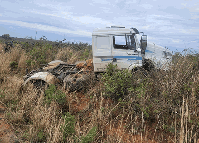 Carreta tomba no Norte de Minas e condutor é levado para o hospital