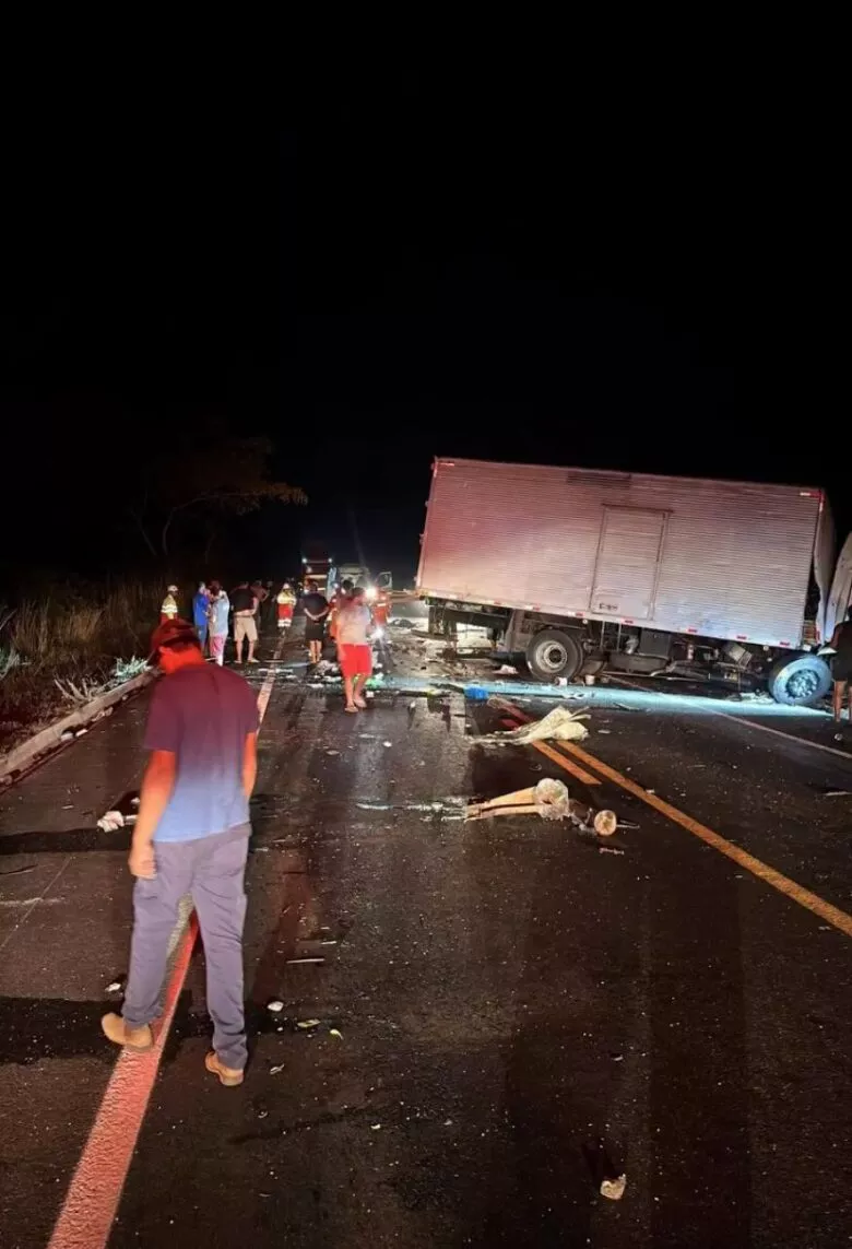 Uma batida envolvendo dois caminhões e uma carreta deixou duas pessoas mortas na rodovia MGC-135, próximo ao trevo de Engenheiro Dolabella, em Bocaiuva, na noite dessa segunda-feira, 29/set. Uma carreta e um caminhão que seguiam no sentido Joaquim Felício para Engenheiro Dolabella colidiram com outro caminhão que seguia no sentido contrário. O caminhão transportava madeiras para piso, saindo de Belo Horizonte com destino a Camaçari, na Bahia. A carreta transportava refrigerantes, vinda de Sete Lagoas com destino a Montes Claros. Já o terceiro caminhão levava maquinário para abertura de poços artesianos. As duas vítimas fatais, uma foi encontrada caída na pista e a outra embaixo do caminhão que transportava o maquinário. O motorista da carreta carregada de refrigerantes e o condutor do caminhão com madeira sofreram apenas ferimentos leves e recusaram atendimento.