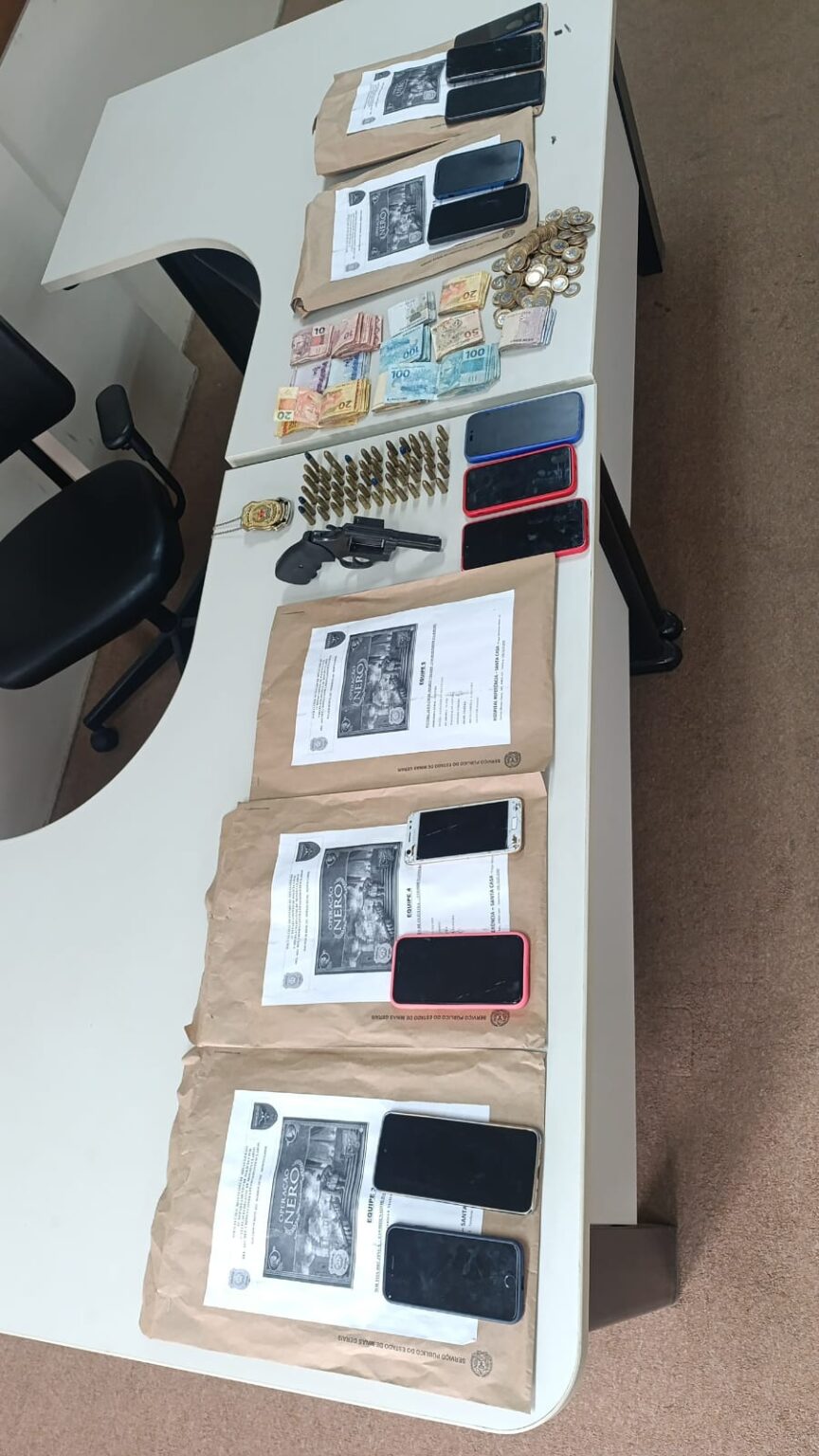 A ação resultou na apreensão de 13 aparelhos celulares, R$ 6.480 em dinheiro, um revólver calibre 38, 50 munições calibre 9 mm, seis munições calibre .38 e uma munição calibre .40. O suspeito preso e todo o material apreendido foram encaminhados à Delegacia de Plantão em Montes Claros.