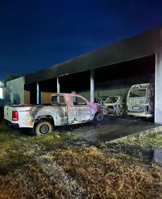 Incêndio criminoso destrói vários veículos em garagem comercial no Norte de Minas. Suspeito foi preso