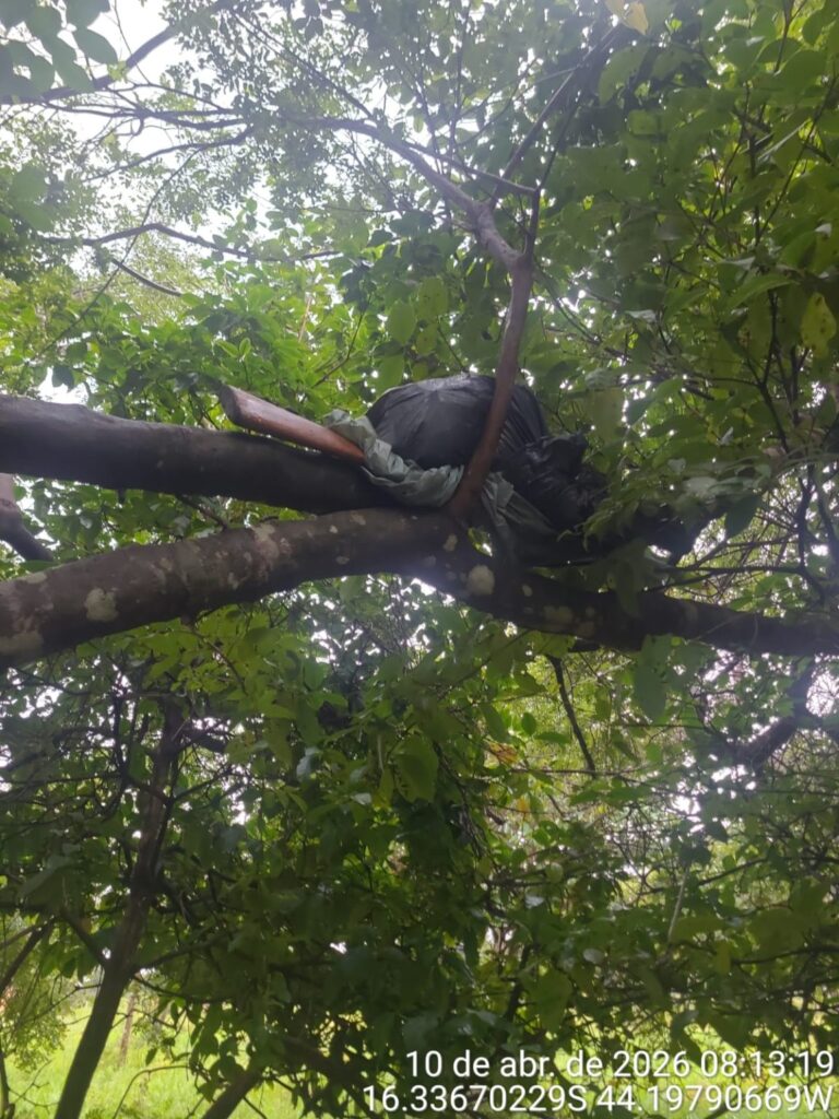 Armas são encontradas escondidas em árvore numa fazenda na zona rural de Mirabela