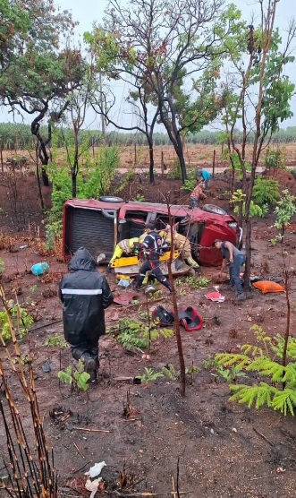 Equipes do SAMU de Pirapora prestaram atendimento às vítimas de um capotamento na BR-365, próximo a Pirapora, na manhã desta segunda-feira, 20/out. Uma criança e três adultos ficaram feridos depois que a caminhonete em que estavam capotar na rodovia. O veículo seguia de Vazante para Divisa Alegre e, no momento do acidente, chovia. O Samu socorreu uma menina de seis anos com escoriações leves, o motorista de 59 anos teve uma crise de hipertensão, mas não apresentava ferimentos aparentes. Uma mulher de 55 anos apresentava trauma de tórax e fratura na perna direita, e uma outra, de 25 anos, com suspeita de fratura no braço direito.